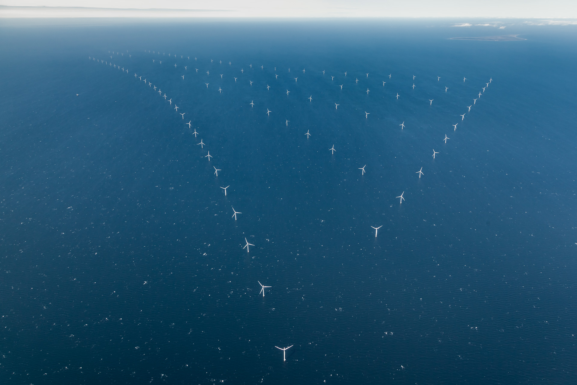 - Luftfoto af vindmøllepark